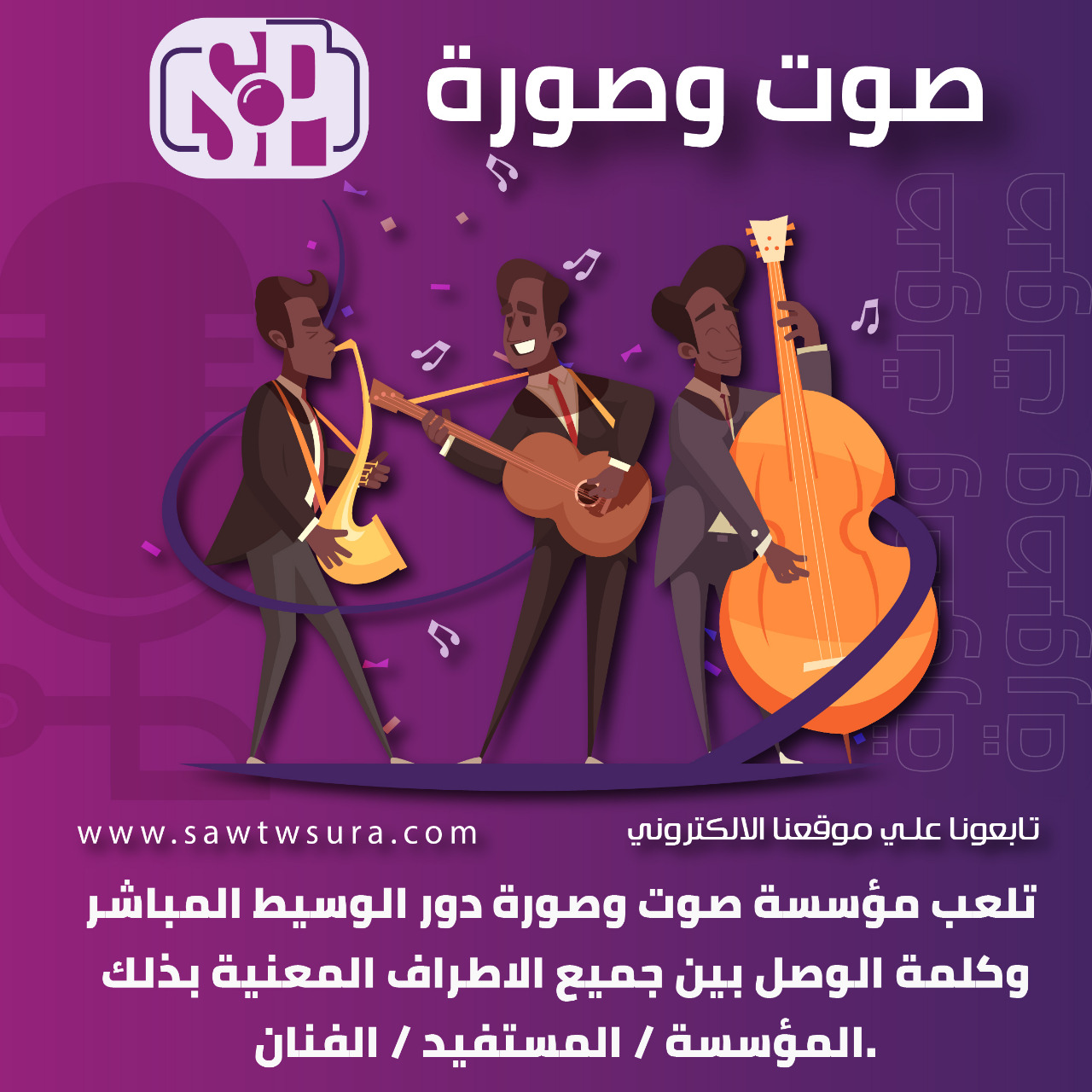 • نحن مؤسسة (صوت وصورة للإنتاج الإعلامي والفعاليات الترفيهية) التي تعمل بصفة رسمية بموجب سجل تجاري رقم ( 2050174330 ) ( 2050157647 ) والموثقة من قبل الدوائر الحكومية الرسمية في المملكة العربية السعودية، وسوف تلعب مؤسسة صوت وصورة دور الوسيط المباشر والغير مباشر وكلمة الوصل بين جميع الاطراف المعنية بذلك